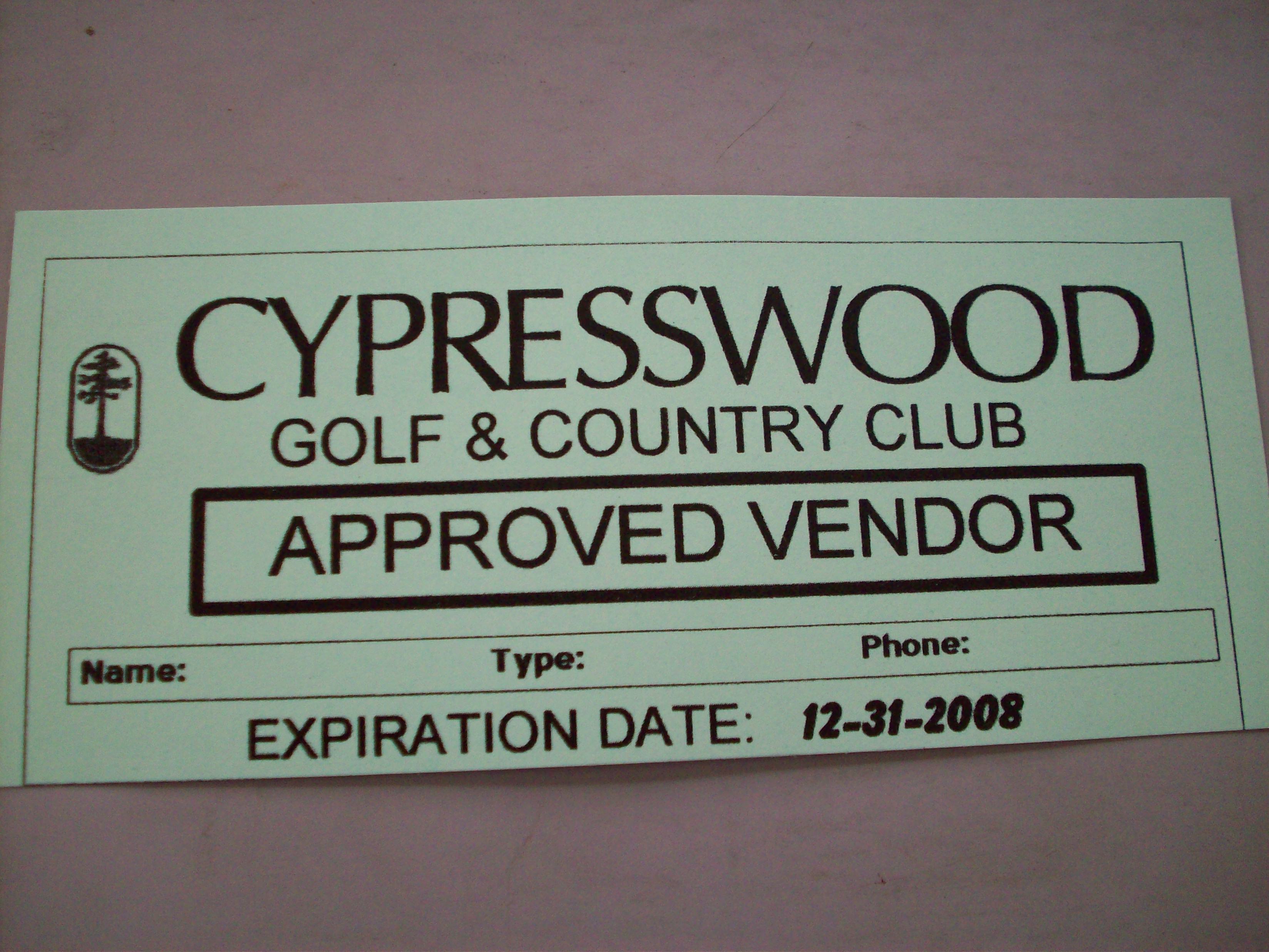 A vendor pass is typically given to those who come into the Cypresswood community to do work for someone. A vendor pass differs from a regular visitor pass or day pass because it lasts all year long. You can request one from one of the traffic control staff members, but you can only get one if you work for someone in Cypresswood. All vendor passes are usually updated within the first or second week of the new year. If you have already acquired a vendor pass then you simply just come to the gate, show us the one you have, and then throw away the old one once we give you the updated one. Vendor passes are strictly for the people who do work in Cypresswood. Do not expect us to give you one if you just come to the gate and ask.